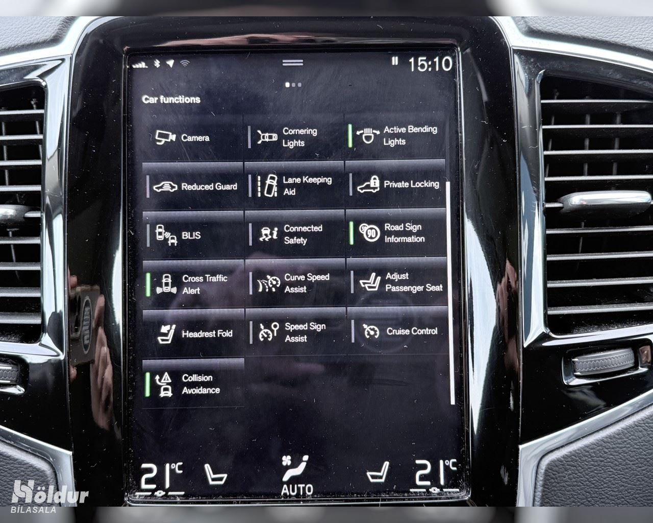 Rafdrifnar rúður - Rafdrifnir hliðarspeglar - Rafdrifin framsæti - Hiti í framsætum - Aflstýri - ABS hemlakerfi - Litað gler - Höfuðpúðar á aftursætum - Armpúði í aftursætum - Útvarp - Leðuráklæði - Loftkæling - Álfelgur - Líknarbelgir - Auka felgur - Veltistýri - Fjarstýrðar samlæsingar - Spólvörn - Stöðugleikakerfi - Leiðsögukerfi - Bakkmyndavél - Minni í framsætum - Aksturstölva - Fjarlægðarskynjarar aftan - Lykillaust aðgengi - Aðgerðahnappar í stýri - Bluetooth símatenging - LED aðalljós - LED dagljós - ISOFIX festingar í aftursætum - Glerþak - AUX hljóðtengi - Bluetooth hljóðtenging - USB tengi - Hiti í aftursætum - Hiti í stýri - Brekkubremsa niður - Dráttarkrókur (rafmagns) - Loftþrýstingsskynjarar - LED afturljós - Þokuljós framan - Þokuljós aftan - Aðfellanlegir hliðarspeglar - Hiti í hliðarspeglum - Rafdrifin handbremsa - Rafdrifið lok farangursrýmis - 360° myndavél - Forhitun á miðstöð - Akreinavari - Lykillaus ræsing - Hraðatakmarkari - Fjarlægðarskynjarar framan - Blindsvæðisvörn - Umferðarskiltanemi - Sjálfvirk há/lág aðalljós - Stefnuljós í hliðarspeglum - Start/stop búnaður - Skynvæddur hraðastillir - Snertilaus opnun farangursrýmis - Tveggja svæða miðstöð - Apple CarPlay - Android Auto